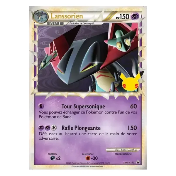 Découvrez Lanssorien (swsh132), une carte Pokémon de l’extension Promos Épée & Bouclier, provenant du bloc Épée & Bouclier. Idéale pour compléter votre collection, cette carte Promo plaira autant aux collectionneurs qu’aux joueurs.