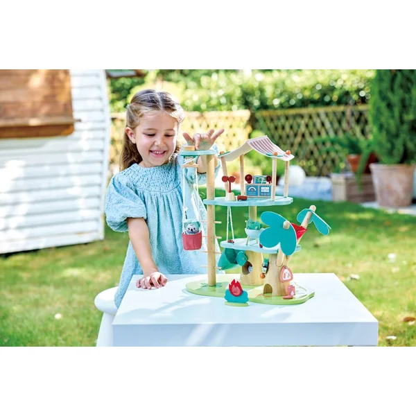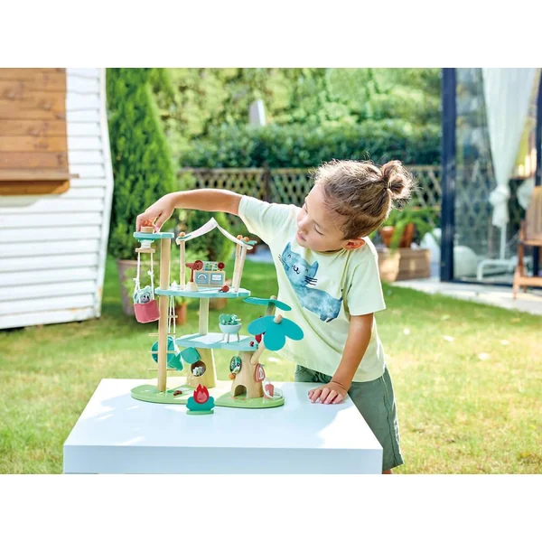 Comprend 1 cabane avec ascenseur et hamac, 1 figurine, 1 phalanger volant, des meubles et des accessoires et 1 dépliant. Fabriqué avec au moins 80% de matériaux renouvelables, dont le PE vert et le bois certifié FSC.