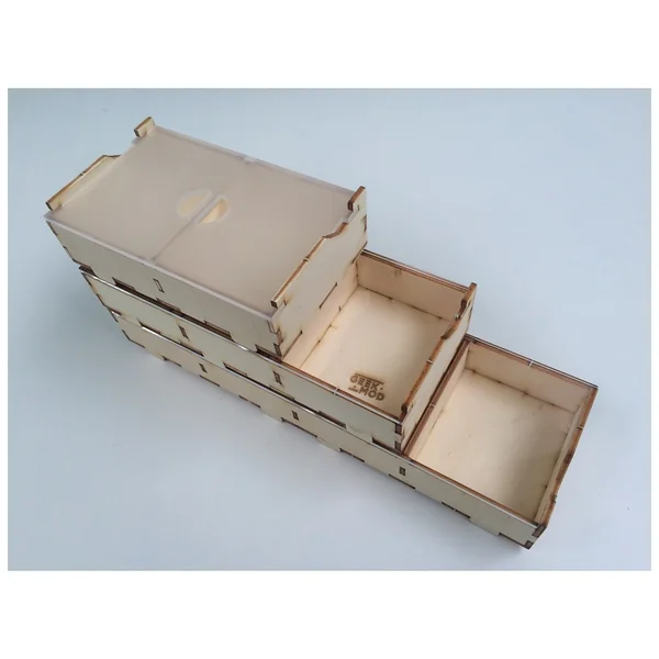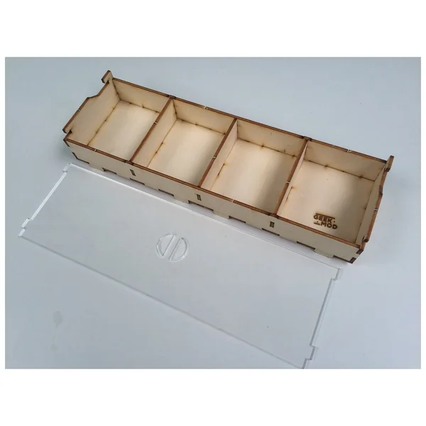 Comporte 4 compartimentsRéalisé en contreplaqué léger de la plus haute qualité. Couvercle en plexiglas. Facile à assembler et nécessite de la colle (nous recommandons Wikol, Magic ou autre colle pour bois).