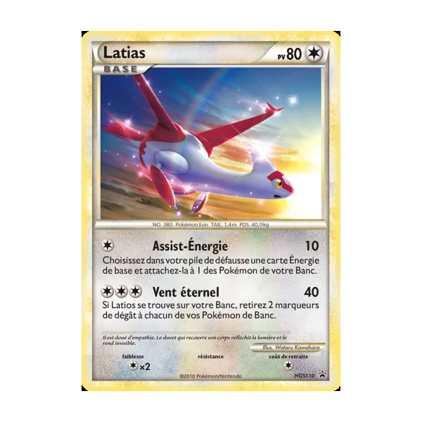 Découvrez Latias (hgss010), une carte Pokémon de l’extension Promos HGSS, provenant du bloc HeartGold & SoulSilver. Idéale pour compléter votre collection, cette carte Promo plaira autant aux collectionneurs qu’aux joueurs.