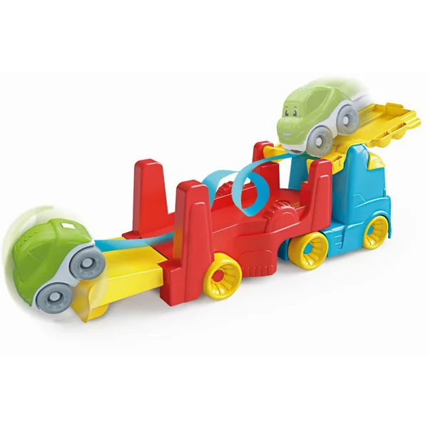 Le camion contient une voiture et devient un amusant circuit pour la faire culbuter !