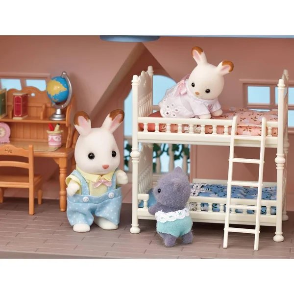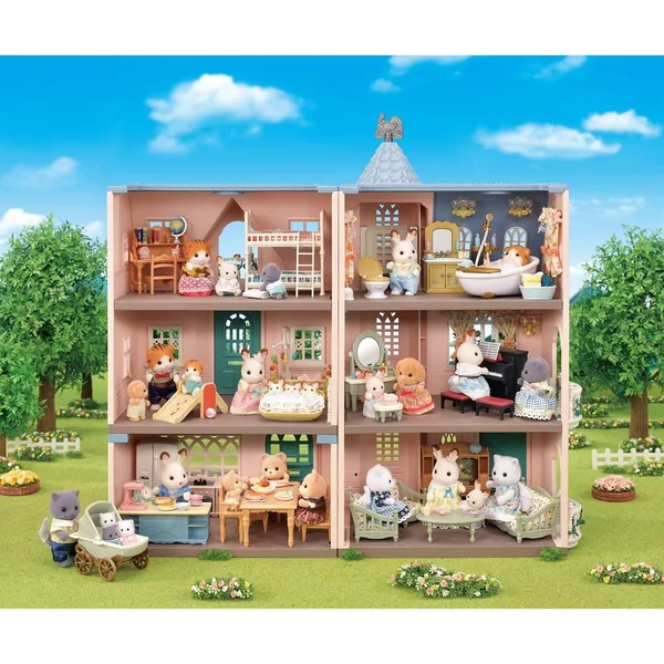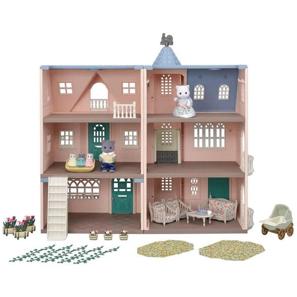 Le coffret 3 maisons et accessoires est composé de 3 célèbres maisons Sylvanian Families : Le cosy cottage du village, La maison framboise et La maison avec ascenseur. Les maisons s’assemblent de différentes manières, ce qui permet à l’enfant de créer sa propre maison et d’obtenir jusqu’à neuf espaces de jeu avec une grande terrasse. Un relooking complet des maisons avec de nouvelles couleurs pour le toit, les murs et les fenêtres. Le contenu est enrichi par cinq figurines chat persan : le papa et la maman et les triplés ; de meubles (une table basse et deux chaises) et de plantes pour décorer les devantures des maisons.