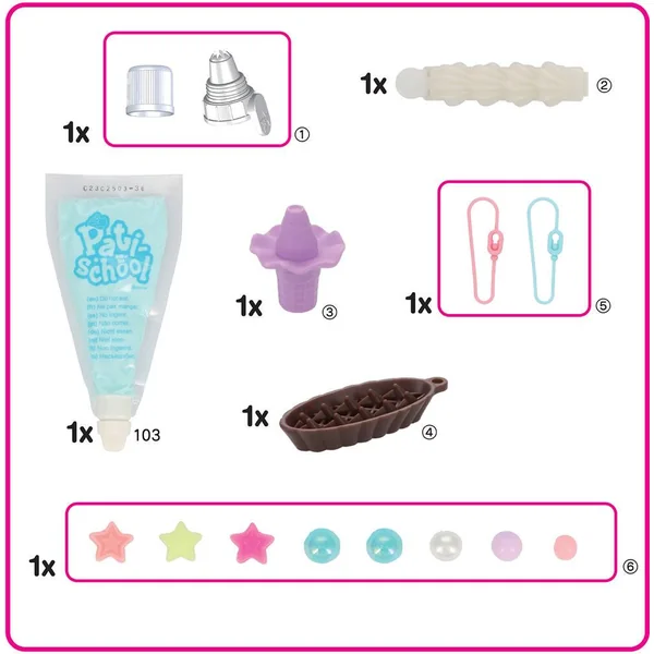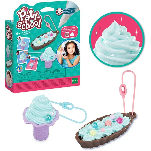 Un kit qui contient tout le nécessaire pour démarrer avec Pati-school. Réalisez une bague et un porte-clés en formes de jolis gateaux ! Munissez vous de la poche à douille remplie de pâte modelable, et décorez les bases solides. Placez les décorations selon vos envies, et laissez sécher !