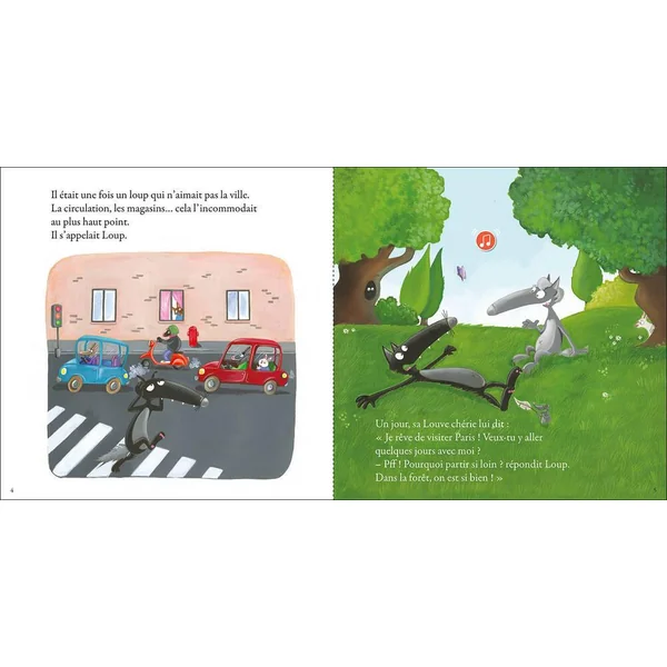 Louve rêve de découvrir Paris, mais la vie, ah ! Loup n’aime pas ça. Qu’à cela ne tienne, Louve ira seule ! Voici donc notre Loup lancé, en musique à la recherche de son amoureuse dans les rues de la capitale…