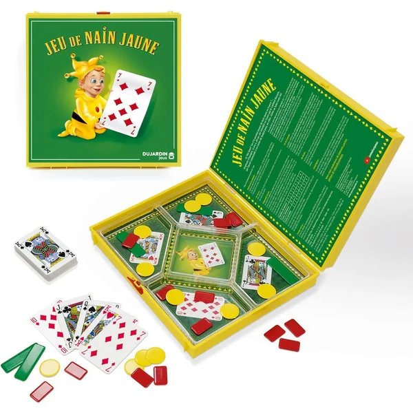 Le véritable jeu du Nain Jaune dans une mallette aménagée en table de jeu qui permet de jouer partout ! Nouvelle version.