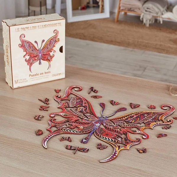 Puzzle en bois Le Papillon Illusionniste est un fantastique habitant du ciel.