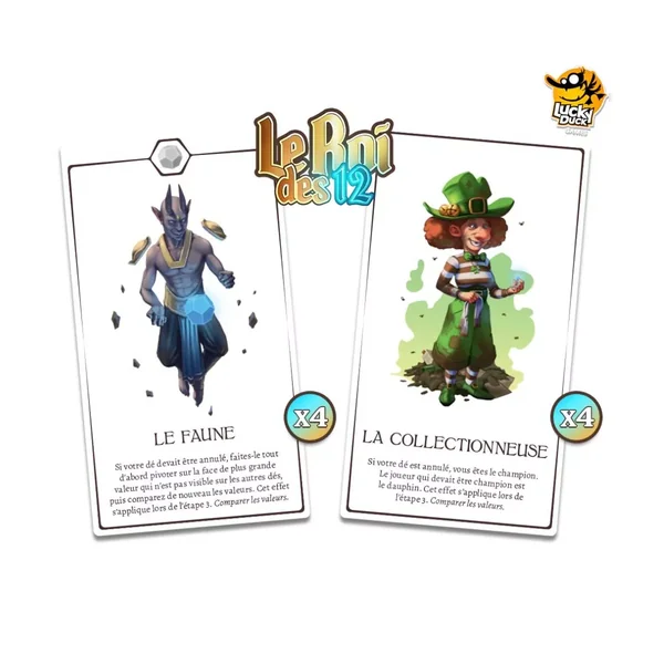 Le roi des 12 – Mini extension personnages contient deux cartes exclusives.