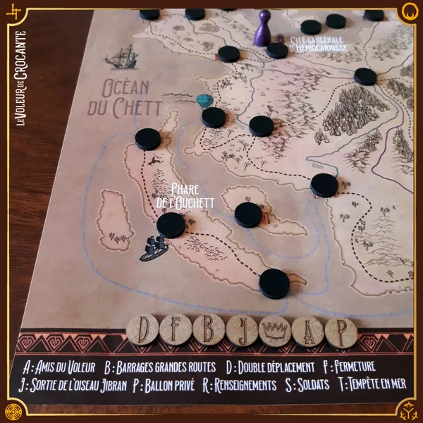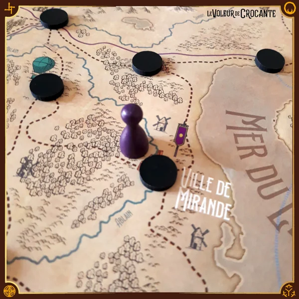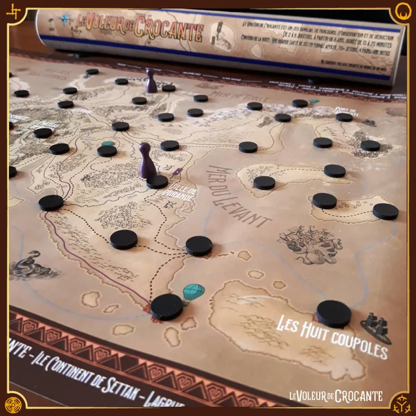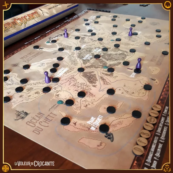 Le Voleur de Crocante se joue sur une grande carte figurant l’île continent de Settak. Les voleurs doivent rejoindre un des quatre ports pour s’enfuir en se déplaçant secrètement alors que les gardes ont les yeux fermés.Les gardes doivent déduire et anticiper les déplacements des voleurs pour les attraper, ils bénéficient de bonus en fouillant les différents lieux.C’est le plus malin qui remportera la partie !