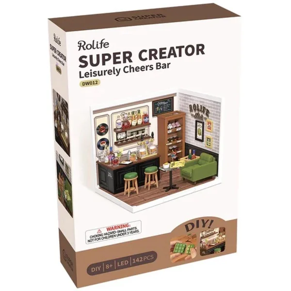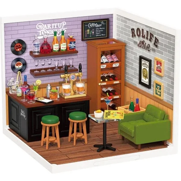DW012 est un décor de bar miniature décontracté et élégant. Construisez-le rapidement et empilez-le pour créer votre quartier nocturne urbain.
