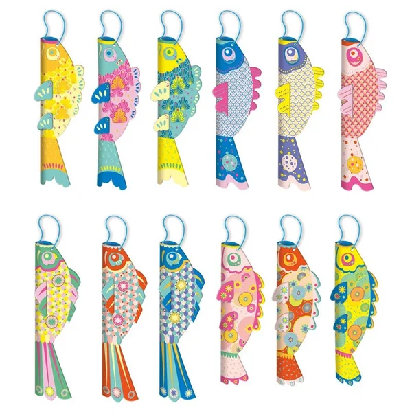 Ce kit créatif permet aux enfants à partir de 7 ans de créer 12 poissons en papier à suspendre : idéals pour fabriquer une guirlande sur un thème marin ou pour des petites surprises un 1ᵉʳ avril, par exemple ! Au programme de ce coffret créatif : expression artistique, patience et minutie. Colorés et illustrés, les 12 poissons sont à assembler et à décorer de jolis stickers. Il faudra compter environ 15 minutes par poissons : voilà une activité calme qui fera le bonheur de tout le monde à la maison !