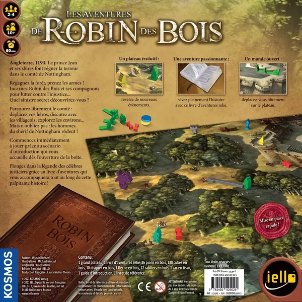 Le plateau de jeu « se souvient » de ce que les joueurs ont déjà exploré ou trouvé, et grâce à des matériaux spécifiques, l’ensemble du jeu peut être monté et démonté rapidement. Au lieu d’utiliser des cartes comme dans les Légendes d’Andor, le jeu raconte l’histoire de Robin des Bois dans un livre relié de haute qualité, et selon les décisions que prennent les joueurs, l’histoire change…