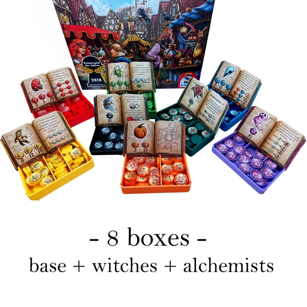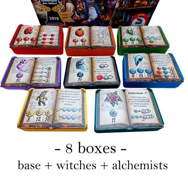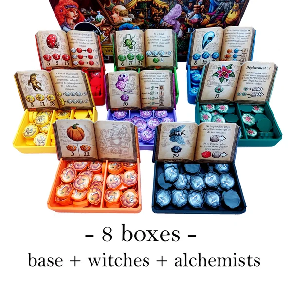 Ces boites s’insèrent parfaitement dans la boite de jeu pour être utilisées comme rangement.