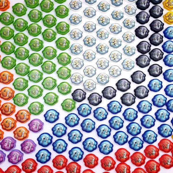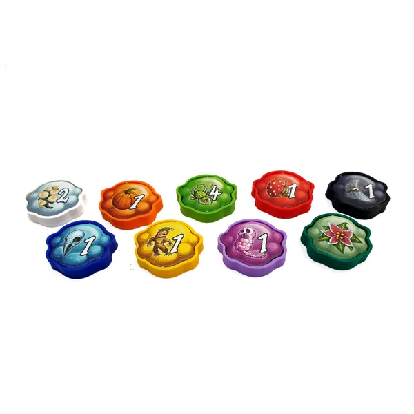 Comprend les jetons pour le jeu de base et toutes les extensions (Sorcières et Alchimistes)