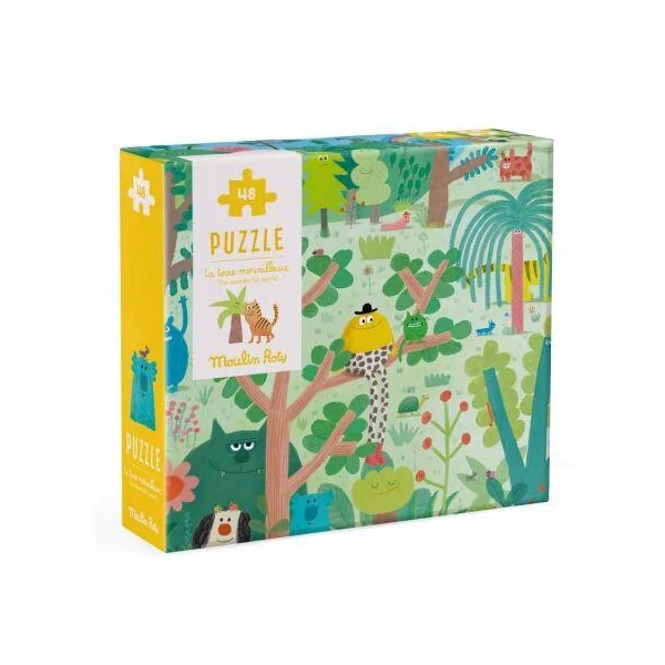 Puzzle d’observation 48 pcs, La terre merveilleuse + 1 poster, collection Les Schmouks. Une fois assemblé, à l’aide d’une loupe, amuse-toi à retrouver les objets et animaux cachés dans l’illustration de Delphine Durand. 4 anset +