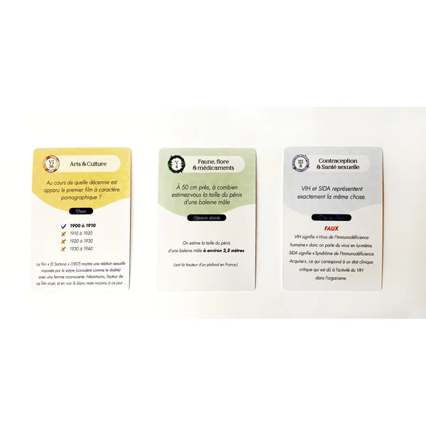 - 360 cartes questions réparties en 6 thèmes (QCM, vrai-faux, réponse directe – contenu pédagogique complémentaire)