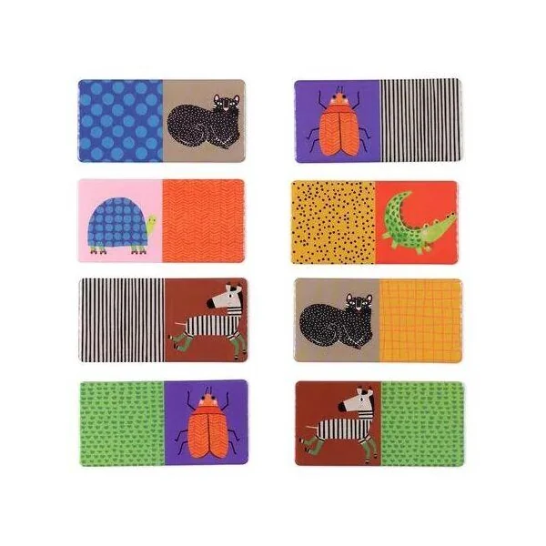 Jeu d’éveil en carton avec les animaux et les motifs des Toupitis. Jeu pour observer et apprendre, les couleurs et les formes. Contient 28 cartes. Dès 3 ans.