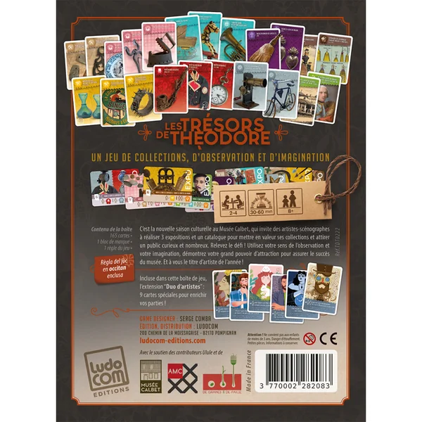 À l’issue des 3 manches décomptées, chaque joueur réalise son Catalogue d’expos, en assemblant ses cartes Objet collectées au cours de la partie. Le joueur ayant attiré le plus de visiteurs gagne la partie.