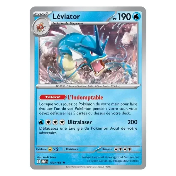 Découvrez Léviator (mew130), une carte Pokémon de l’extension 151, provenant du bloc Écarlate & Violet. Idéale pour compléter votre collection, cette carte Rare plaira autant aux collectionneurs qu’aux joueurs.