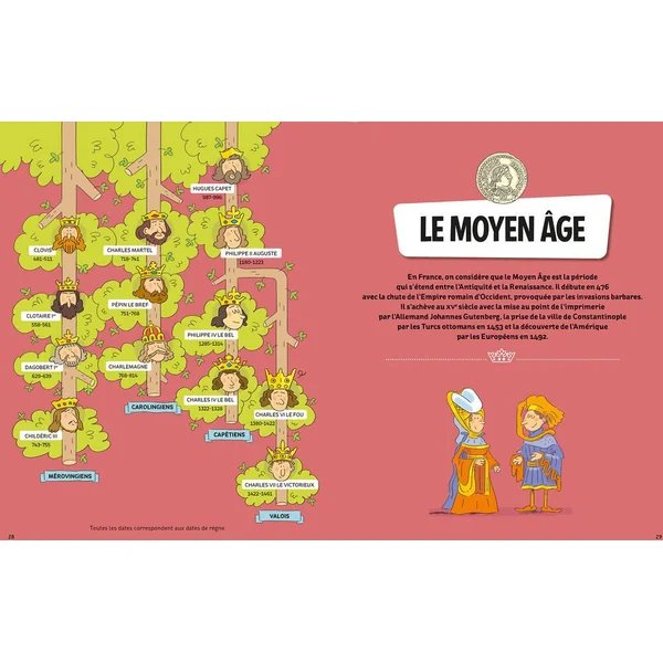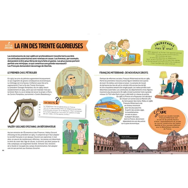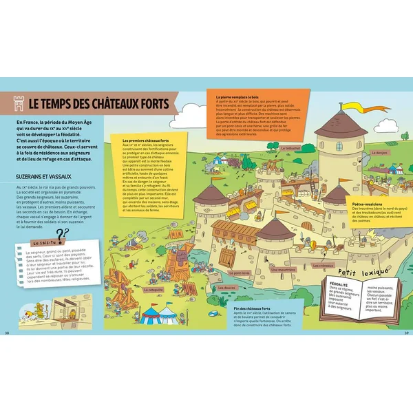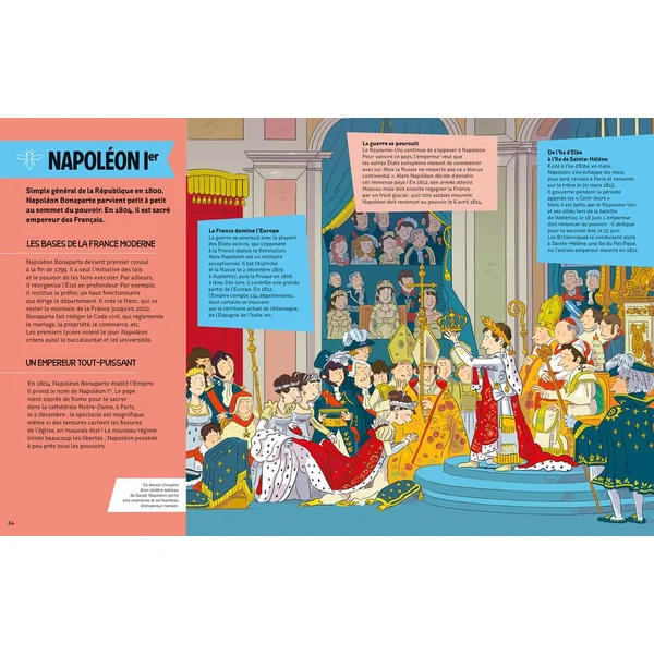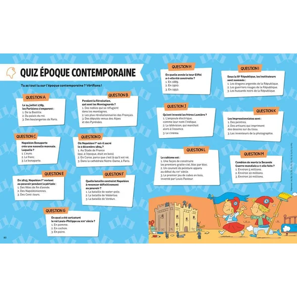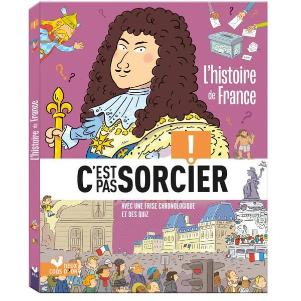 Retrouve tout ce que tu as toujours voulu savoir sur l’histoire de France : de la préhistoire jusqu’à nos jours, en passant par les Gaulois, les rois qui ont gouverné, les batailles et les guerres qui ont forgé et bouleversé notre pays, ou encore la création de l’Union européenne.C’est parti pour un long voyage dans le temps !Des informations documentaires en photos et en illustrations.Des quiz, des questions-réponses, des vrai-faux…Une grande frise chronologique pour bien se repérer dans le temps !