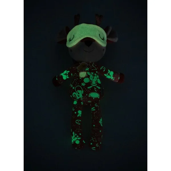 Jelínek Stella porte un pyjama magique avec un masque de sommeil qui brille dans l’obscurité. La douce lumière réduit le stress et aide à apaiser les enfants dans leur lit.