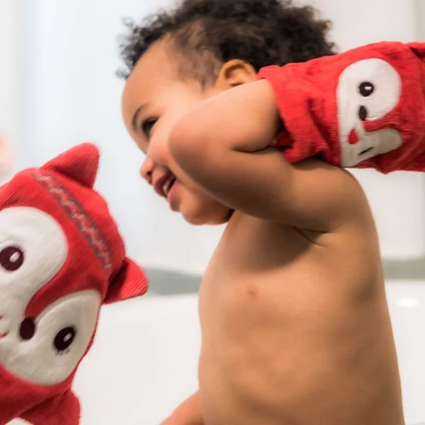 Faites de votre bain une activité amusante avec cet ensemble de gants super doux en forme de maman renard Alice et de sa petite fille. Les gants se transforment en marionnettes une fois enfilés, vous permettant de jouer à de petites pièces de théâtre et d’inventer des histoires avec les enfants. Le lavage devient ainsi plus amusant et les enfants apprennent l’autonomie. Les gants sont doux pour la peau sensible des enfants et conviennent aux enfants à partir de 6 mois. Un cadeau qui rendra le bain un moment exceptionnel de complicité entre le parent et l’enfant.