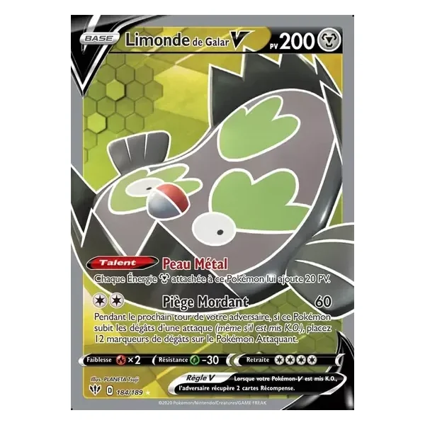 Découvrez Limonde de Galar (daa184), une carte Pokémon de l’extension Ténèbres Embrasées, provenant du bloc Épée & Bouclier. Idéale pour compléter votre collection, cette carte Ultra Rare plaira autant aux collectionneurs qu’aux joueurs.