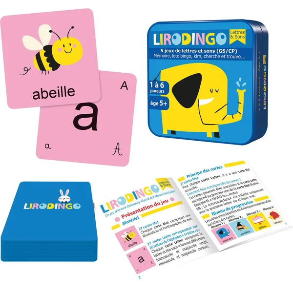 LiroDingo associe chaque lettre de l’alphabet avec le son le plus courant qui lui correspond. Il favorise la reconnaissance des lettres.