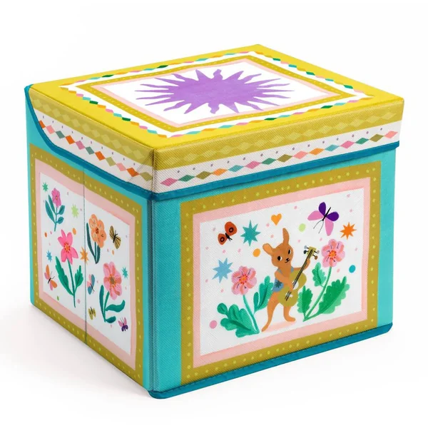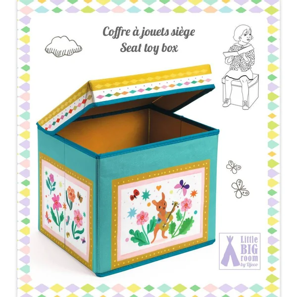 Un coffre à jouets coloré sur le thème de la roulette. Un joli objet de décoration parfait pour que tout soit bien rangé ! Solide grâce à sa structure en bois, il se transforme en un siège pour enfant (poids max : 30 kg).