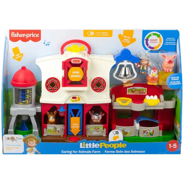 Les enfants peuvent imaginer toutes sortes d’histoires à la ferme avec le coffret Little People® Les Animaux de la Ferme de Fisher-Price®. Avec ce coffret riche en activités, les tout-petits peuvent aider le fermier à prendre soin de tous ses amis animaux : aider les poussins à éclore, installer confortablement le cheval dans son box et montrer à la truie et à la vache comment se laisser tomber à tour de rôle dans la grange où est entreposé le foin.