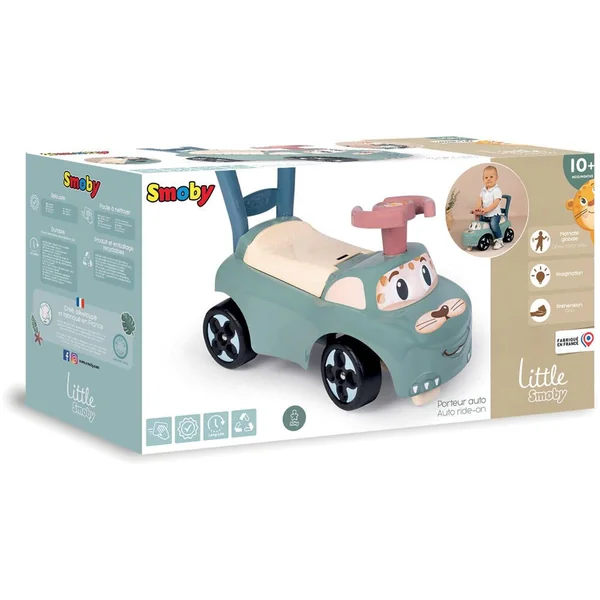 Porteur Little Smoby en forme de voiture pour les petits dès 10 mois. Le porteur Auto dispose d’un châssis ergonomique, ultra-stable ; il est équipé de butées anti-bascules avant et arrière pour plus de sécurité. Le dos du porteur pourra servir de trotteur afin que bébé puisse faire ses premier pas. Coffre à jouets sous le siège.