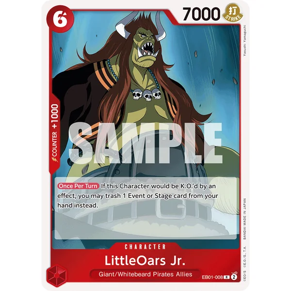 Découvrez LittleOars Jr. (eb01008), une carte Rare de l’extension Memorial Collection. Idéale pour compléter votre collection, cette carte Rare plaira autant aux collectionneurs qu’aux joueurs.