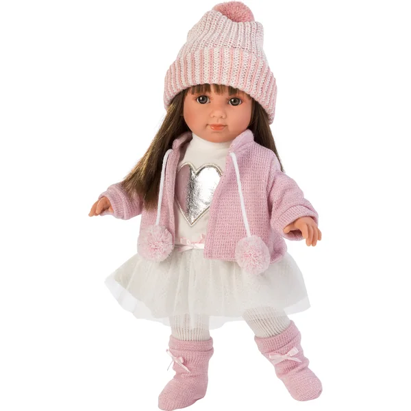 Poupée sans son avec un corps en tissu doux et des cheveux sur toute la tête, ressemblant à une petite demoiselle.