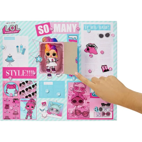 Plus de 25 surprises dans le nouveau calendrier de l’avent L.O.L. Surprise! Découvre une poupée exclusive L.O.L. Surprise!, de nombreux vêtements et accessoires de mode. 1 poupée exclusive – 24 vêtements et accessoires de mode exclusifs – Feuille d’autocollants.