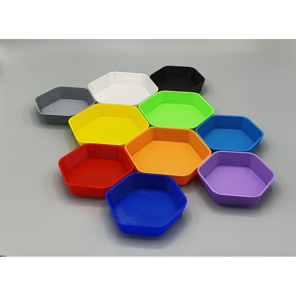 Le pack Arc-en-ciel comprend 6 coupelles hexagonales de couleurs différentes réalisées en impressions 3D à base de PLA.