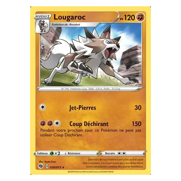 Découvrez Lougaroc (cpa030), une carte Pokémon de l’extension La voie du Maître, provenant du bloc Épée & Bouclier. Idéale pour compléter votre collection, cette carte Holo Rare plaira autant aux collectionneurs qu’aux joueurs.