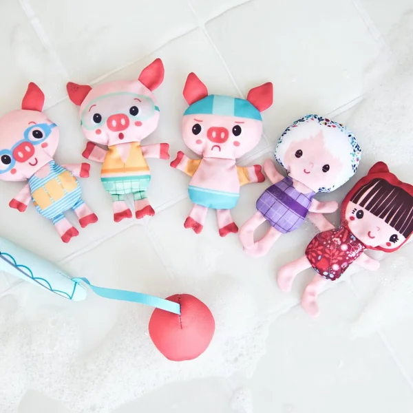 Ce jeu de péche avec canne aimantée promet un plaisir éclaboussant à l’heure du bain. N’oubliez pas de compter la prise. Une manière excellente de stimuler la motricité fine de votre bambin.