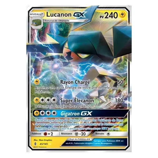 Découvrez Lucanon (gri045), une carte Pokémon de l’extension Gardiens Ascendants, provenant du bloc Soleil & Lune. Idéale pour compléter votre collection, cette carte Ultra Rare plaira autant aux collectionneurs qu’aux joueurs.