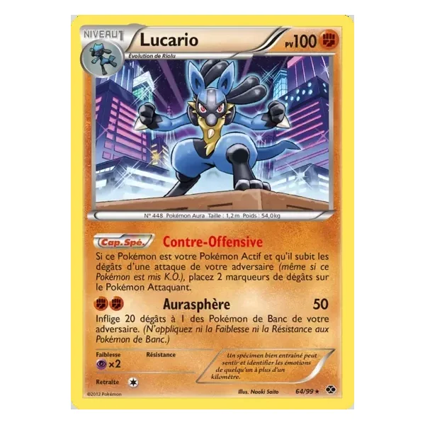 Découvrez Lucario (nxd064), une carte Pokémon de l’extension Destinées Futures, provenant du bloc Noir & Blanc. Idéale pour compléter votre collection, cette carte Holo Rare plaira autant aux collectionneurs qu’aux joueurs.