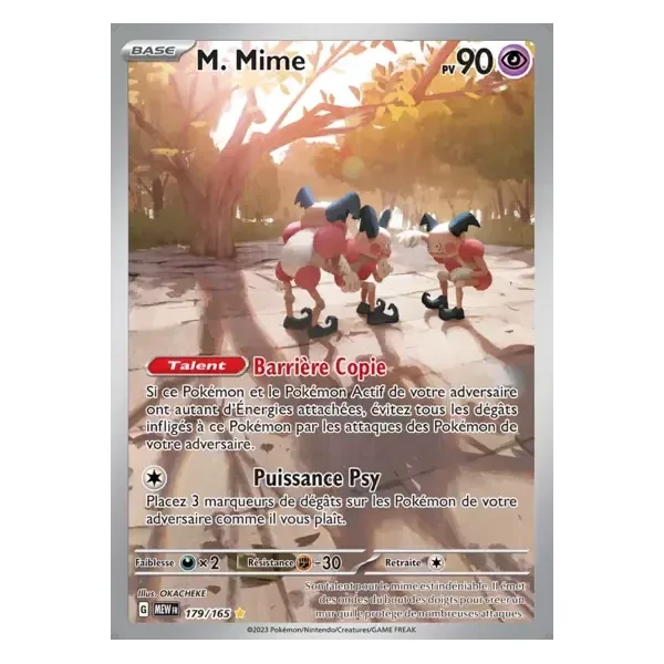 Découvrez M. Mime (mew179), une carte Pokémon de l’extension 151, provenant du bloc Écarlate & Violet. Idéale pour compléter votre collection, cette carte Illustration Rare plaira autant aux collectionneurs qu’aux joueurs.