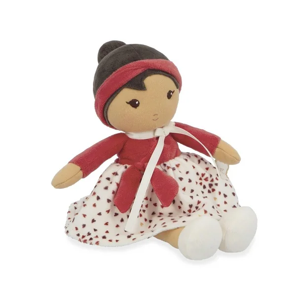 Place au romantisme ! Découvrez Émilie, une charmante poupée en tissu, dans son format 32 cm. Adaptée à bébé dès la naissance, elle fait partie de la collection de poupées Tendresse de Kaloo. La poupée Émilie porte une jolie jupe à volants ornée de cœurs, reflétant sa joie de vivre et son amour pour la vie. Avec son beau cache cœur rouge, assorti à son bandeau, elle est prête pour toutes les aventures. À ses pieds, des baskets confortables lui permettent d’arpenter les rues et d’en apprécier la beauté authentique. Émilie est une petite poupée qui incarne la liberté et qui aime célébrer la beauté de la vie. D’une grande douceur, elle est parfaite à câliner et à saisir par les plus petits. On craque tous pour son petit chignon soigné et son élégant ruban autour du cou !