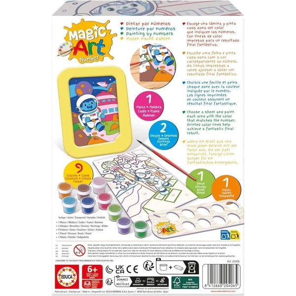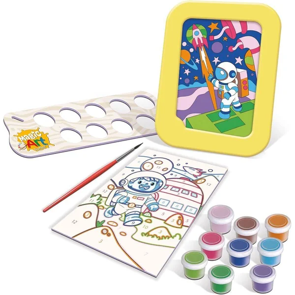 Amuse-toi à peindre avec les numéros ! Ce coffret est spécialement conçu pour les enfants à partir de 4 ans. Chaque zone du dessin est associée à un numéro qui indique la couleur à utiliser — c’est très facile ! Une activité créative qui aide à développer la concentration, la coordination et la reconnaissance des couleurs, tout en s’amusant. Contient tout le nécessaire pour commencer : une planche avec dessin numéroté, des peintures et un pinceau.