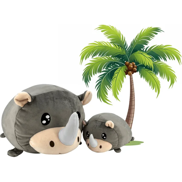 Un petit rhinocéros mignon qui ressemble exactement à sa maman adorée. Un jouet en peluche thématique brodé en très doux peluche de haute qualité, adapté à tous les groupes d’âge.