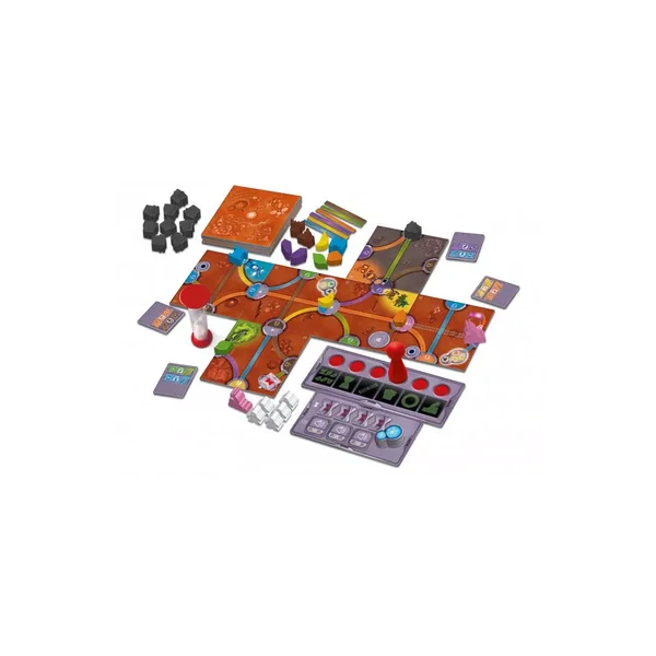 Dans Magic Maze On Mars. les joueurs coopèrent simultanément en silence et contre le temps pour livrer diverses marchandises à des points stratégiques de la planète. Chaque joueur dispose d’une action exclusive (liée à une couleur) qu’il est seul à pouvoir utiliser.