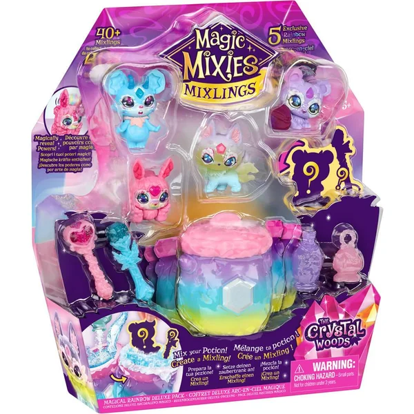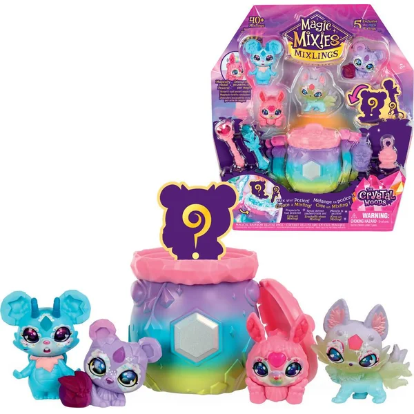 Invoque de nouveaux Mixlings en mélangeant les ingrédients magiques dans le chaudron. Avec la poudre pétillante, le chaudron fait de vraies bulles ! Quel Mixling vas-tu trouver ? Chaque Mixling a un pouvoir magique spécial à révéler à l’aide des accessoires magiques. 5 Mixlings inclus, 48 à collectionner.