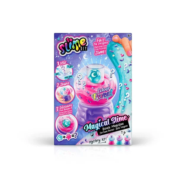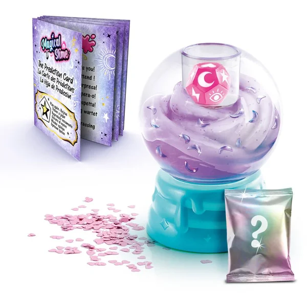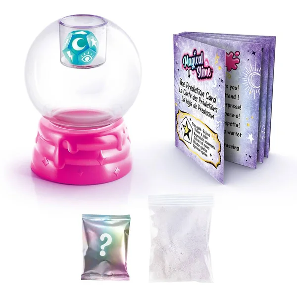 Mélange la poudre de slime magique à de l’eau, ajoute les décorations surprises et secoue ta boule magique pour découvrir ce que te réserve l’avenir ! La couleur du slime apparait au contact de l’eau pour un effet 100% Magique !