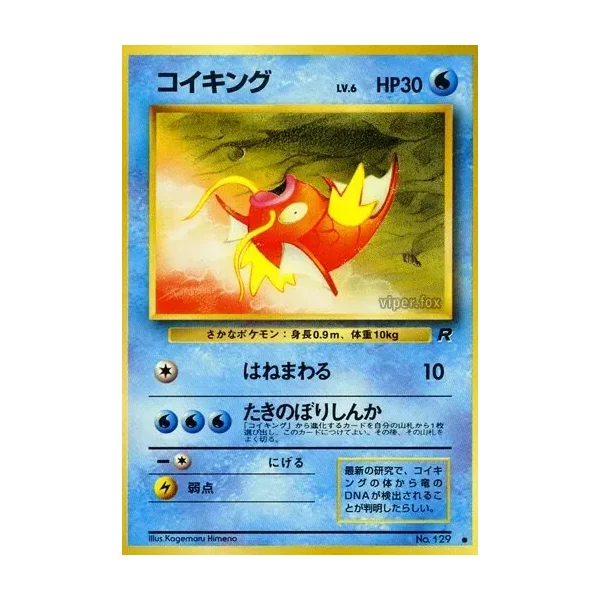 Découvrez Magicarpe (rog020), une carte Pokémon de l’extension Rocket Gang, provenant du bloc Original Era. Idéale pour compléter votre collection, cette carte Commune plaira autant aux collectionneurs qu’aux joueurs.