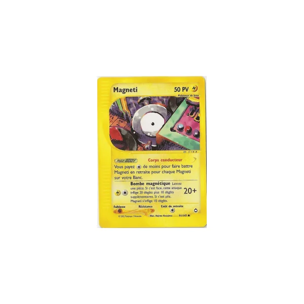 Découvrez Magneti (aq091), une carte Pokémon de l’extension Aquapolis, provenant du bloc Wizards. Idéale pour compléter votre collection, cette carte Commune plaira autant aux collectionneurs qu’aux joueurs.