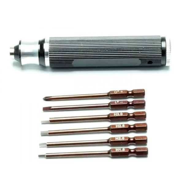 Magnétiseur pour Tournevis T2M – T422659Le Magnétiseur pour Tournevis de T2M est l’accessoire indispensable pour tous les passionnés de modélisme et de bricolage de précision. En quelques secondes, il permet de magnétiser l’embout de vos tournevis, afin de maintenir vos vis en place et d’éviter toute chute ou perte lors du montage et de l’entretien de vos modèles réduits. Un outil compact et efficaceConçu pour être léger, compact et durable, ce magnétiseur T2M se glisse facilement dans une boîte à outils. Sa conception robuste garantit une magnétisation rapide et efficace, idéale pour manipuler les petites vis souvent utilisées dans le modélisme RC ou les maquettes. Caractéristiques Principales du Magnétiseur