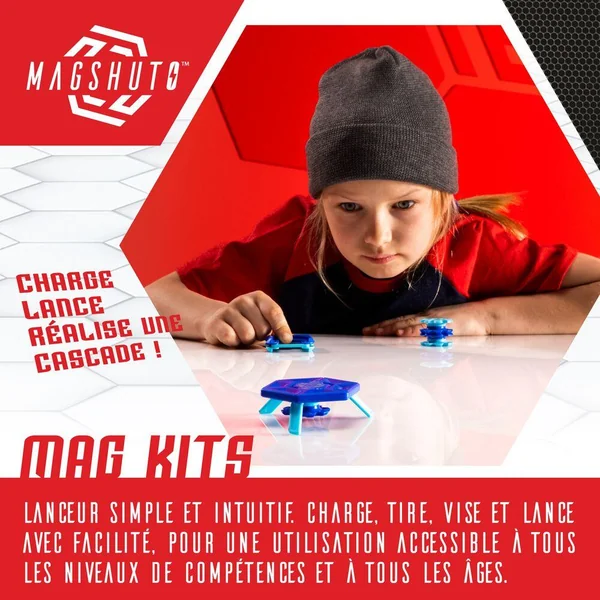Avec ton doigt, vise et relâche pour lancer. Amuse-toi à effectuer des tirs tous plus incroyables les uns que les autres ! Maîtrise le Mag Module et montre l’étendue de ton talent. Deviens le maître incontesté de Magshuto ! Contient 1 Lanceur, 1 Mag Module, 3 Mag-Pods, 6 carte défis. Collectionne-les tous et passe au niveau supérieur avec le Mag Park et Mag Battle Rail.
