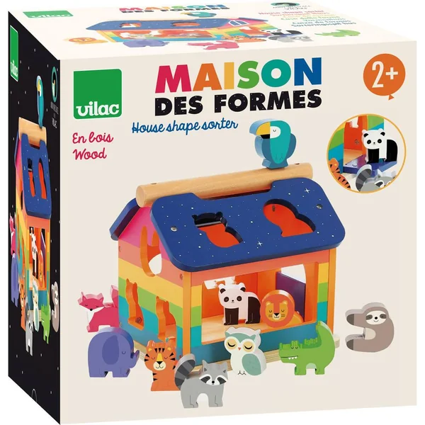 Trieur de formes conçu comme une maison aux couleurs de l’arc-en-ciel et rempli de 10 animaux de la jungle différents, poétiquement illustrés par l’artiste Andy Westface. Stimule l’imagination des enfants lorsqu’ils inventent des histoires avec les 10 animaux, tout en développant des capacités d’analyse, d’observation et de motricité fine lorsque chaque animal est inséré au bon endroit.